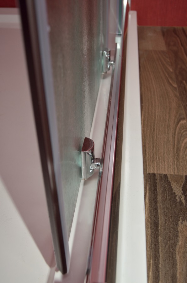 Stejně jako madla, i pochromovaný rám u stěny dveří nebyl nijak poškozen testem se solným roztokem.