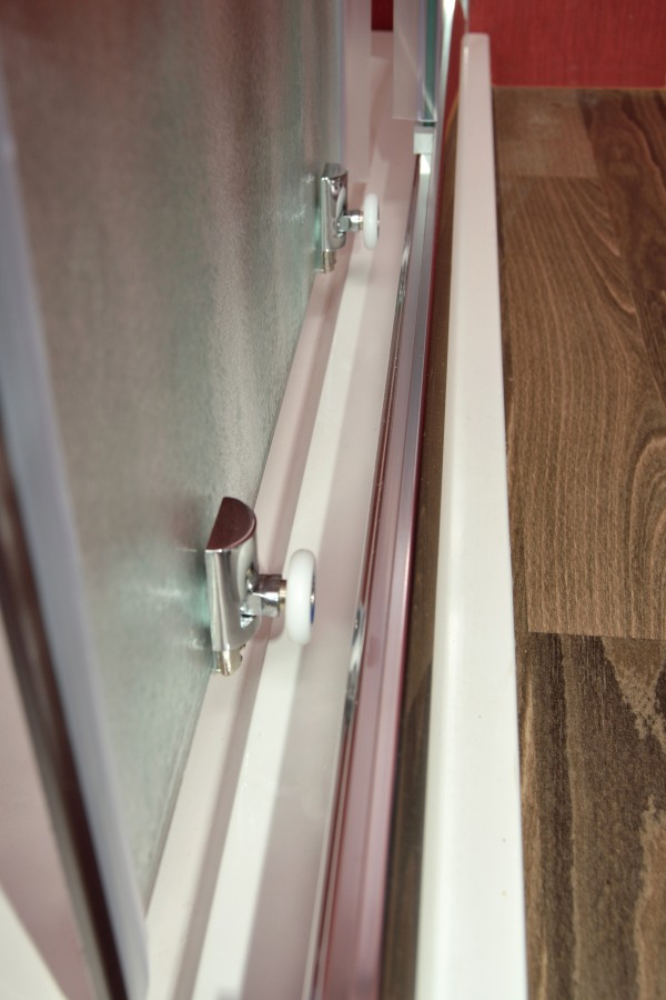 Sprchová zástěna SMARAGD 80 chinchila NEW má zdvojené horní pojezdové kolečka pro tichý a bezproblémový chod.