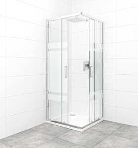 Tento kout je ideální volbou díky čirému sklu s dekorem stripe. Profily jsou v lesklém chromu, které jsou z hliníku. Součástí je vanička a madla. Orientaci otevírání si při montáži můžete sami přizpůsobit. Sprchový kout lze instalovat na sprchovou vaničku i na dlažbu v kombinaci se sprchovým žlabem. Sklo je opatřeno povrchovou úpravou Easy Clean - usnadňuje čištění a zabraňuje usazování vodního kamene.