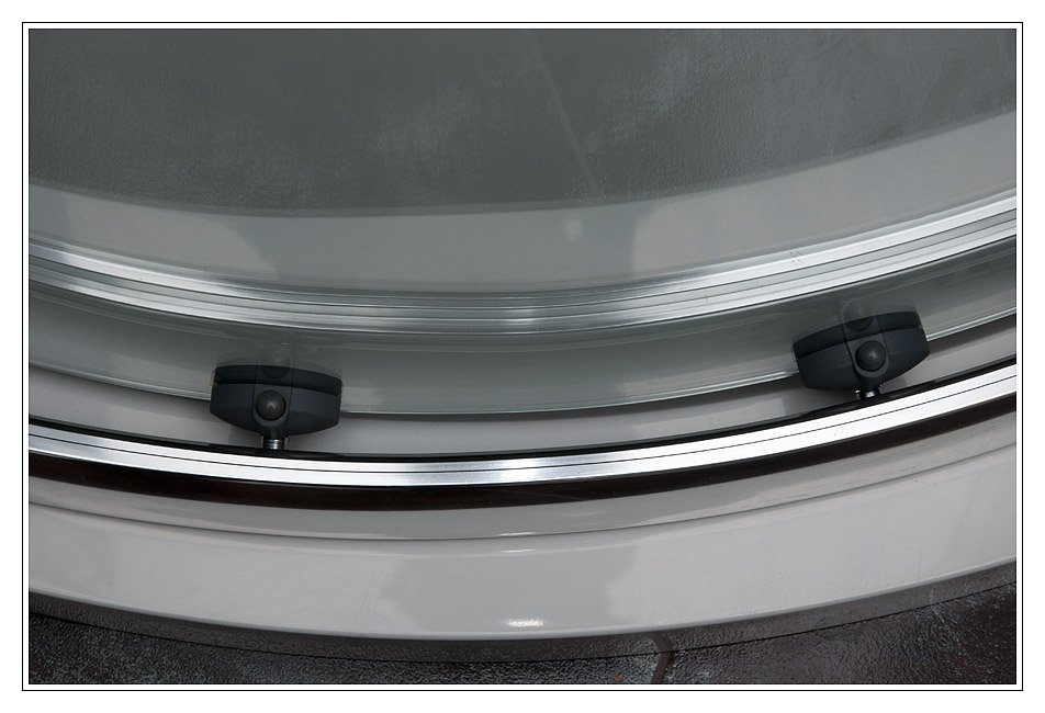Tvrzené bezpečnostní sklo o síle 6mm je vsazeno do elegantního hliníkového rámu.