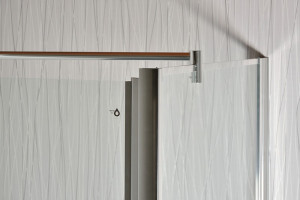 Dveře sprchového koutu MOON se otevírají směrem do prostoru. Tvrzené 5mm bezpečnostní čiré sklo je vsazeno do elegantního leštěného ALU rámu. Výhodou je jistě nastavitelnost dveřního dílu až o 5 cm.