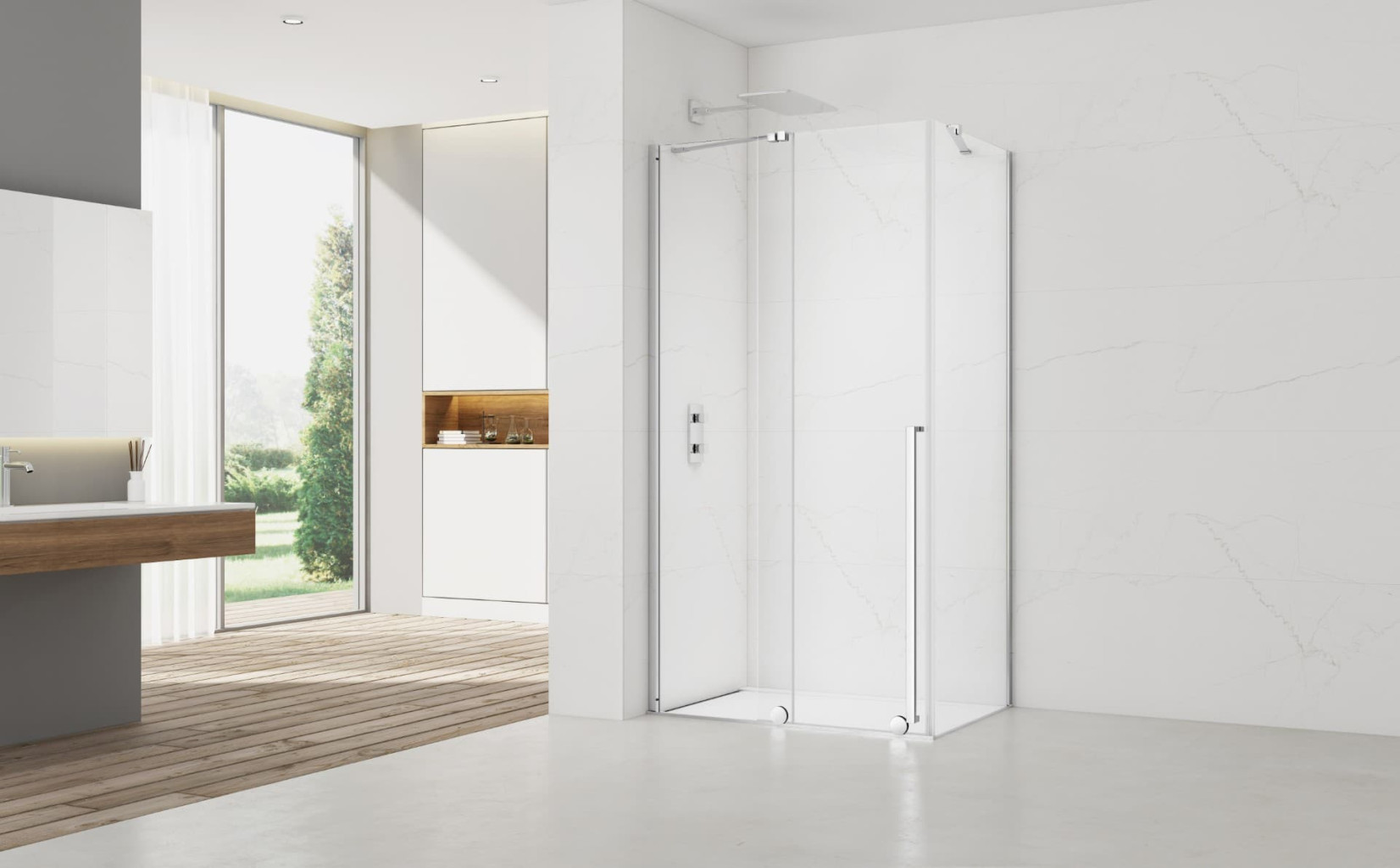 Balíček výrobce SAT ze série Xmotion je perfektní volbou pro každého, kdo hledá pro sprchování širokou zástěnu, kterou může po osvěžení zmenšit až téměř na polovinu svojí šířky, aby zvětšil prostor v koupelně. Designová a spolehlivá kolečka jezdí na dlažbě či sprchové vaničce v kolejničce podle potřeby, aby otevření či zavření dveří bylo co nejsnazší a nejplynulejší. Jednoduchosti ovládání dveří pomáhá i masivní madlo, které na transparentním skle skvěle vyjímá. Průhledné sklo a bezrámové zpracování navíc dává prostor vyniknout obkladům či samotné sprše ve sprchovém koutu.