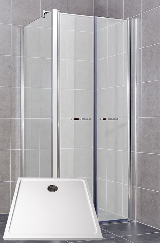 Rozměry: 90 x 90 x 195 cm (sprchové dveře x pevná stěna x výška bez vaničky)