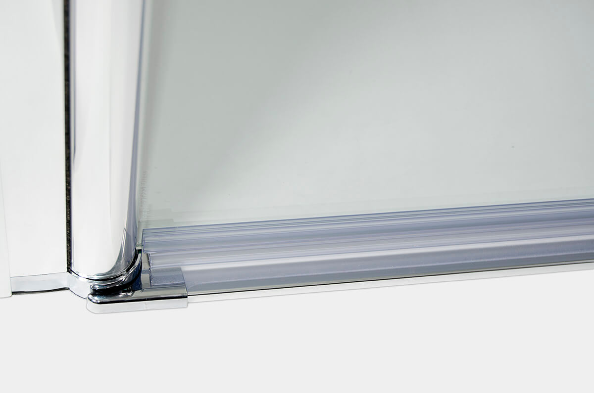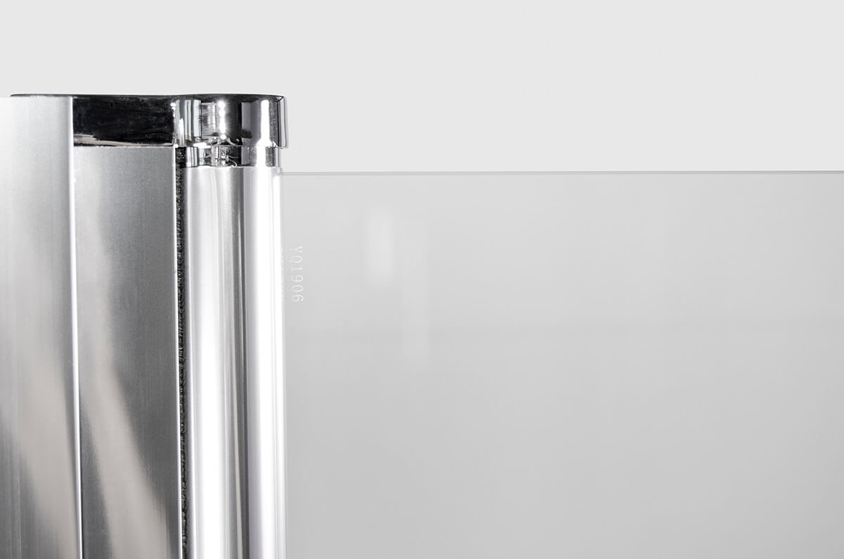5mm tvrzené bezpečnostní sklo dle standardu EN 12150-1 pro Sodnovápenatokřemičité sklo je až pětkrát odolnější vůči bočnímu nárazu, odolá teplotám rozdílům v ploše až 250°C a při rozbití se roztříští na velice malé neostré úlomky. Bez potíží tak prošlo i testem čištění – po 25 000 cyklech bez opotřebení. Je antibakteriální a neobsahuje škodlivé chemikálie.