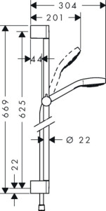 Snadné čištění: Vodní kámen lze snadno odstranit jednoduchým otřením silikonových trysek sprchové hlavice (QuickClean).Pohodlí v celé délce: se sprchovou hadicí z plastu s kovovým vzhledem, dlouhou 1,60 m. Speciální upevnění zabraňuje nepříjemnému přetáčení.Všestranné použití: Ruční sprcha je vhodná i pro průtokové ohřívače.Rychlá instalace: Sprchovou hadici lze obratem ruky našroubovat na již existující standardní přívod (velikost G 1/2).Potěšení ze sprchování: Sprchová hlavice o velikosti 110 mm vás bude hýčkat rovnoměrným, bohatým proudem vody (XXL Performance).Krásnější sprchování: relaxační dešťová sprcha (Rain), silný sprchový proud (IntenseRain) a osvěžující nabuzení (TurboRain) (3jet)Pohodlné přepínání: Požadovaný typ proudu zvolíte snadno a rychle stisknutím tlačítka (Select).Velkolepé vodní potěšení: Průtokové množství přípojky sprchy (při tlaku 3 bary): 15 l/minVodní kámen lze odstranit jednoduchým otřením silikonových trysek sprchové hlavice (QuickClean).Originální sprchová tyč Unica: o délce 0,65 m pro flexibilní nastavení výšky v širokém rozsahuKomfort v plné délce: sprchová hadice o délce 1,60 m pro velkou volnost pohybu. Otočný spoj zabraňuje nepříjemnému přetáčení hadice.Jednoduché ovládání jednou rukou: plně pochromovaný držák sprchové hlavice. Možnost nastavení v rozsahu 45 stupňůVhodná pro průtokový ohřívač: Tato sprchová hlavice umožňuje všestranné použití.Kvalita od hansgrohe: Vymývatelný filtr zachytí nečistoty, než se dostanou do sprchové hlavice – pro zajištění spolehlivé a dlouhodobé funkčnosti.Součásti dodávky: sprchová sada, těsnění se sítkem, upevňovací materiál, montážní návodVšechny součásti jsou vyrobeny z vysoce kvalitních materiálů – pro větší bezpečnost a dlouhodobé užívání v domácnosti.Prodloužená pětiletá záruka* na produkt, vyrobený podle nejvyšších kvalitativních standardů *(viz www.hansgrohe.cz/zaruka)Historie hansgrohe od roku 1901 – prémiová značka výrobků pro koupelnu a kuchyňPARAMETRY: