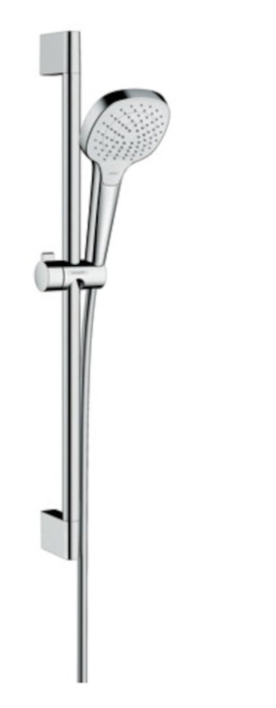 Sprchová sada Croma Select E Vario Vás bude hýčkat mnoha detaily, které zpříjemňují sprchování. Přepínání typů proudu umístila společnost hansgrohe na snadno dosažitelné místo ve sprchové hlavici. Jednoduše stisknutím tlačítka (Select). Kromě ruční sprchy obsahuje tato kompletní sada originální sprchovou tyč Unica a sprchovou hadici o délce 1,60 m. Jezdce na sprchové tyči (0,65 m) je možné plynule posouvat do různých výšek a lze také měnit jeho sklon v rozsahu 45°.