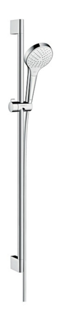 Sprchová sada Croma Select E Vario Vás bude hýčkat mnoha detaily, které zpříjemňují sprchování. Přepínání typů proudu umístila společnost hansgrohe na snadno dosažitelné místo ve sprchové hlavici. Jednoduše stisknutím tlačítka (Select). Kromě ruční sprchy obsahuje tato kompletní sada originální sprchovou tyč Unica a sprchovou hadici v délce 1,60 m. Jezdcem na sprchové tyči (0,90 m) lze plynule posouvat do různých výšek a lze měnit jeho sklon až o 45°.