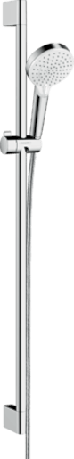 Moderní kombinace lesklých chromových povrchů a bílého sprchového disku vytváří oživující kontrast. Neotřelý a hodnotně působící design ruční sprchy a nadčasově elegantní sprchové tyče se harmonicky začlení do každé koupelny.