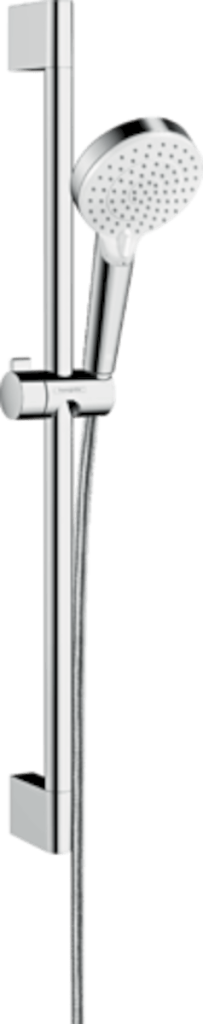 Moderní kombinace lesklých chromových povrchů a bílého sprchového disku vytváří oživující kontrast. Neotřelý a hodnotně působící design ruční sprchy a nadčasově elegantní sprchové tyče se harmonicky začlení do každé koupelny.