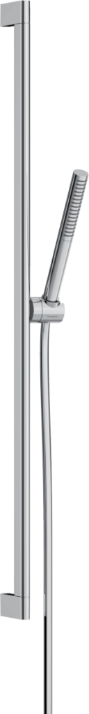 Sprchová sada Pulsify S 100 (jeden typ proudu) s nástěnnou tyčí o délce 0,90 m od hansgrohe uspokojí touhu po inovativním a moderním řešení pro každodenní příjemné sprchování. Jedinečný proud hansgrohe PowderRain vás zahalí do vodního závoje z těch nejjemnějších kapiček a promění sprchu v místo pohody. Trysky rozmístěné na velké ploše cylindrické sprchové hlavice zajišťují dokonalou distribuci vody. Tyčová ruční sprcha s nápadně minimalistickým designem upoutá pozornost při individuálních úpravách koupelny a nabízí se v různých povrchových úpravách. K dispozici je leštěný chrom, svěží bílá a výrazná černá.