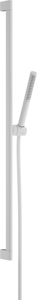 Trysky rozmístěné na velké ploše cylindrické sprchové hlavice zajišťují dokonalou distribuci vody. Tyčová ruční sprcha s nápadně minimalistickým designem upoutá pozornost při individuálních úpravách koupelny a nabízí se v různých povrchových úpravách. K dispozici je leštěný chrom, svěží bílá a výrazná černá.