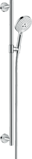 Sprchová sadaRaindance Select Sse skládá z dešťové sprchy hansgrohe, sprchové tyče dlouhé 0,90 m a sprchové hadice dlouhé 1,60 m. Bezpečnost zajišťuje sprchová tyč, která je testována TÜV a lze ji použít také jako rukojeť. Pevnost v tahu až 200 kg nabízí bezpečnou oporu. Chromovaná mosazná tyč o tloušťce 25 mm a pevné kovové nástěnné podpěry zaručují spolehlivé držení. Výšku sprchové hlavice lze na tyči flexibilně nastavit.