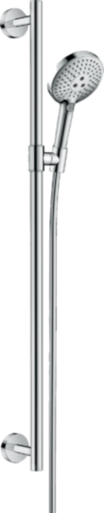 Sprchová sadaRaindance Select Sse skládá z dešťové sprchy hansgrohe, sprchové tyče dlouhé 0,90 m a sprchové hadice dlouhé 1,60 m. Bezpečnost zajišťuje sprchová tyč, která je testována TÜV a lze ji použít také jako rukojeť. Pevnost v tahu až 200 kg nabízí bezpečnou oporu. Chromovaná mosazná tyč o tloušťce 25 mm a pevné kovové nástěnné podpěry zaručují spolehlivé držení. Výšku sprchové hlavice lze na tyči flexibilně nastavit.