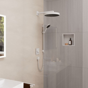 Vychutnejte si okamžiky pohody: To vám umožní Sprchová sada Rainfinity 130 EcoSmart s nástěnnou tyčí S Puro a textilní sprchovou hadicí od hansgrohe. Sada se stylovou matnou povrchovou úpravou a s mnoha komfortními funkcemi vybízí k relaxačnímu sprchování. Sprchová hlavice Rainfinity s extra velkým sprchovým diskem (130 mm) patří k tomu nejlepšímu, co hansgrohe nabízí, a díky technologii EcoSmart spotřebuje přibližně o 40 % vody méně než verze bez technologie EcoSmart – při srovnatelném komfortu sprchování. Součástí je inovativní sprchová hadice, která využívá osvědčené materiály používané při jachtingu a je znatelně lehčí než standardní hadice. Použitá příze je z recyklovaného PET materiálu a je obzvláště odolná, vodotěsná a odpuzuje nečistoty.