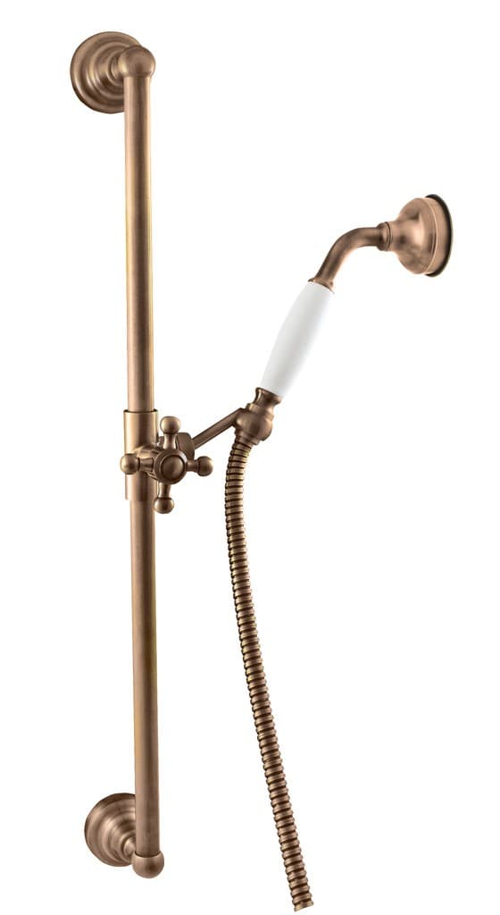 PARAMETRY:Balení: 1 ksHmotnost balení: 2,41  kgDruh výrobku: sprchový set Materiál: kov Barva popisná: stará mosaz Barva základní: bronz Design: retro Výbava: bez baterie Počet funkcí: 1...