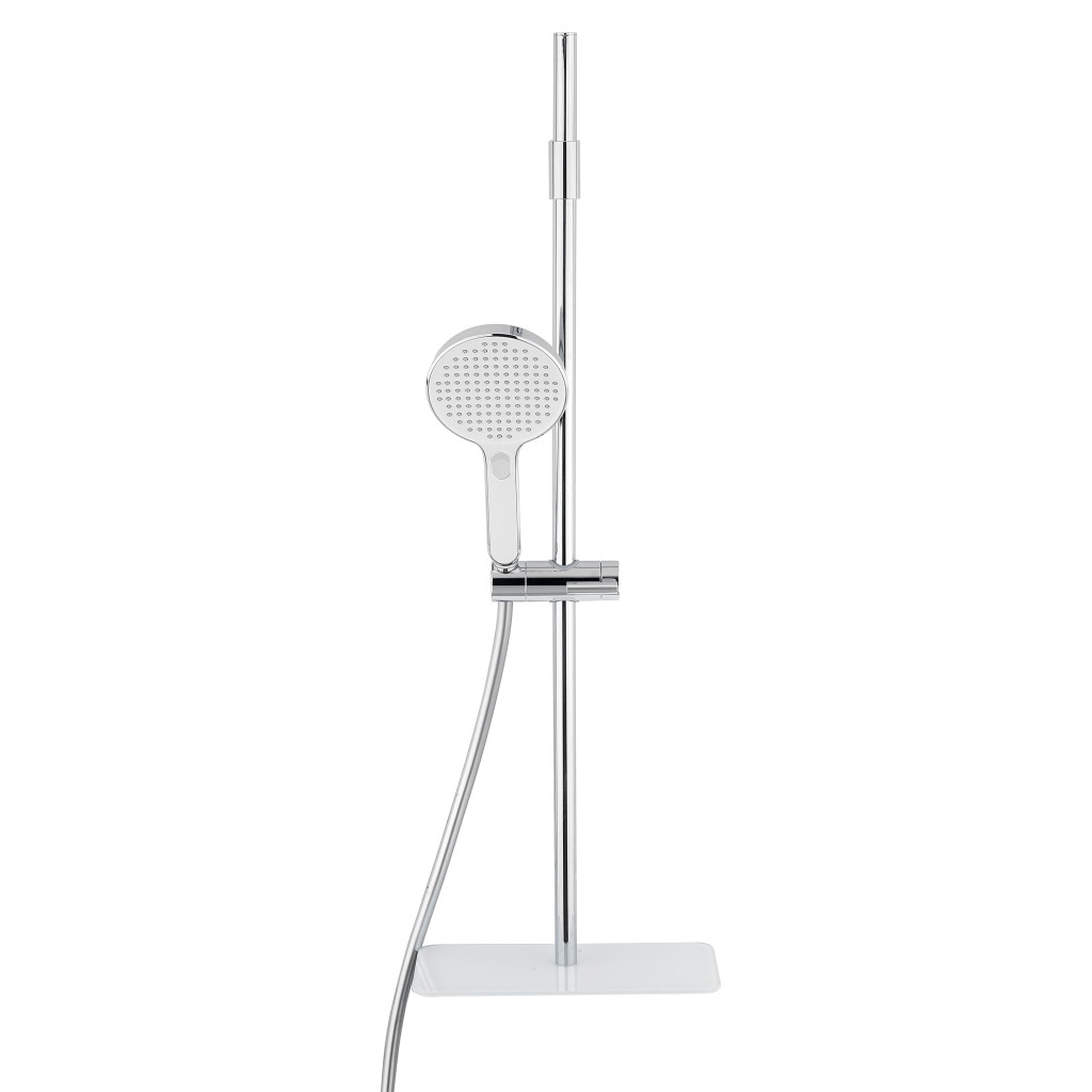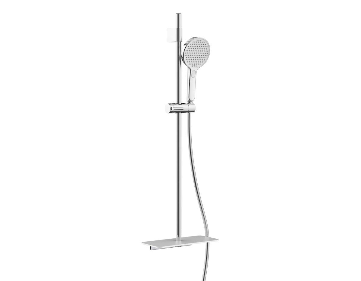 Dotaz na produkt Na splátky ještě dnesSprchový set s praktickou poličkou, ruční sprchou se 3 funkcemi a přepínáním proudů pomocí tlačítka, stříbrnou hadicí a patentovaným posuvným jezdcem pro snadné použití.
