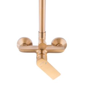 Dotaz na produkt Na splátky ještě dnesSprchový sloup s baterií GAUDI 003J BRUSHED GOLD je elegantní sprchový systém, který kombinuje moderní funkčnost s luxusním designem. Kartáčované zlaté provedení dodává koupelně exkluzivní vzhled a stává se výrazným designovým prvkem vhodným pro moderní i klasické interiéry. Sprchový sloup je vybaven horní hlavovou sprchou a ruční sprchou, které poskytují flexibilní možnosti sprchování podle aktuální potřeby. Horní sprcha nabízí rovnoměrný proud vody pro příjemný relaxační zážitek, zatímco ruční sprcha umožňuje přesné nasměrování proudu vody při každodenní hygieně. Tělo baterie je vyrobeno z kvalitní mosazi, která zajišťuje vysokou odolnost proti korozi a dlouhou životnost. Jednopákové ovládání umožňuje jednoduché a přesné nastavení teploty i průtoku vody. Nastavitelná sprchová tyč umožňuje přizpůsobení výšky podle potřeb uživatele. Klíčové vlastnosti: Kartáčované zlaté provedení – luxusní designový prvek koupelny Mosazné tělo – vysoká pevnost a dlouhá životnost Horní sprcha – rovnoměrný proud vody pro komfortní sprchování Ruční sprcha – flexibilní použití při každodenní hygieně Jednopáková baterie – snadná regulace teploty a průtoku Nastavitelná výška tyče – přizpůsobení podle potřeby Nástěnná montáž – kompatibilní se standardními rozvody Kompletní sada – horní sprcha, ruční sprcha, hadice a montážní prvky