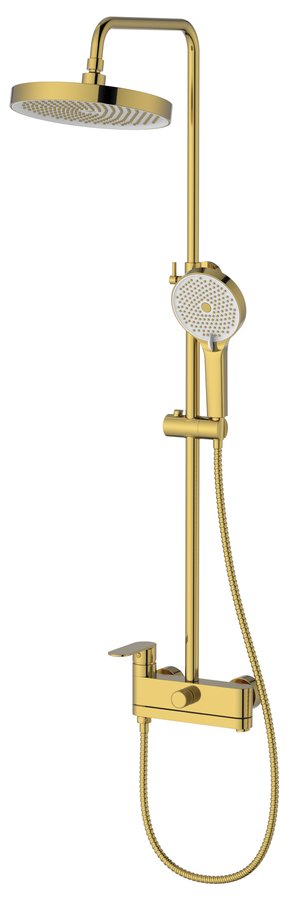ÚvodKoupelnaKoupelnové baterieSprchy a sprchové setySprchový sloup s pákovou baterií, otočné ramínko, zlato mat
