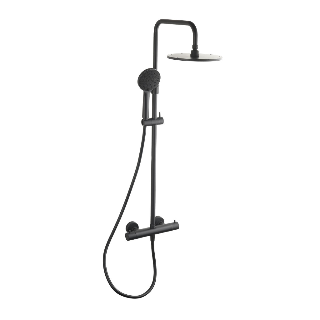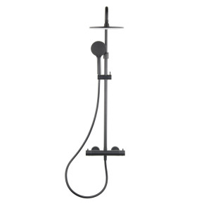 Sprchový systém B-WAY s termostatickou baterií v moderním černém matném provedení.