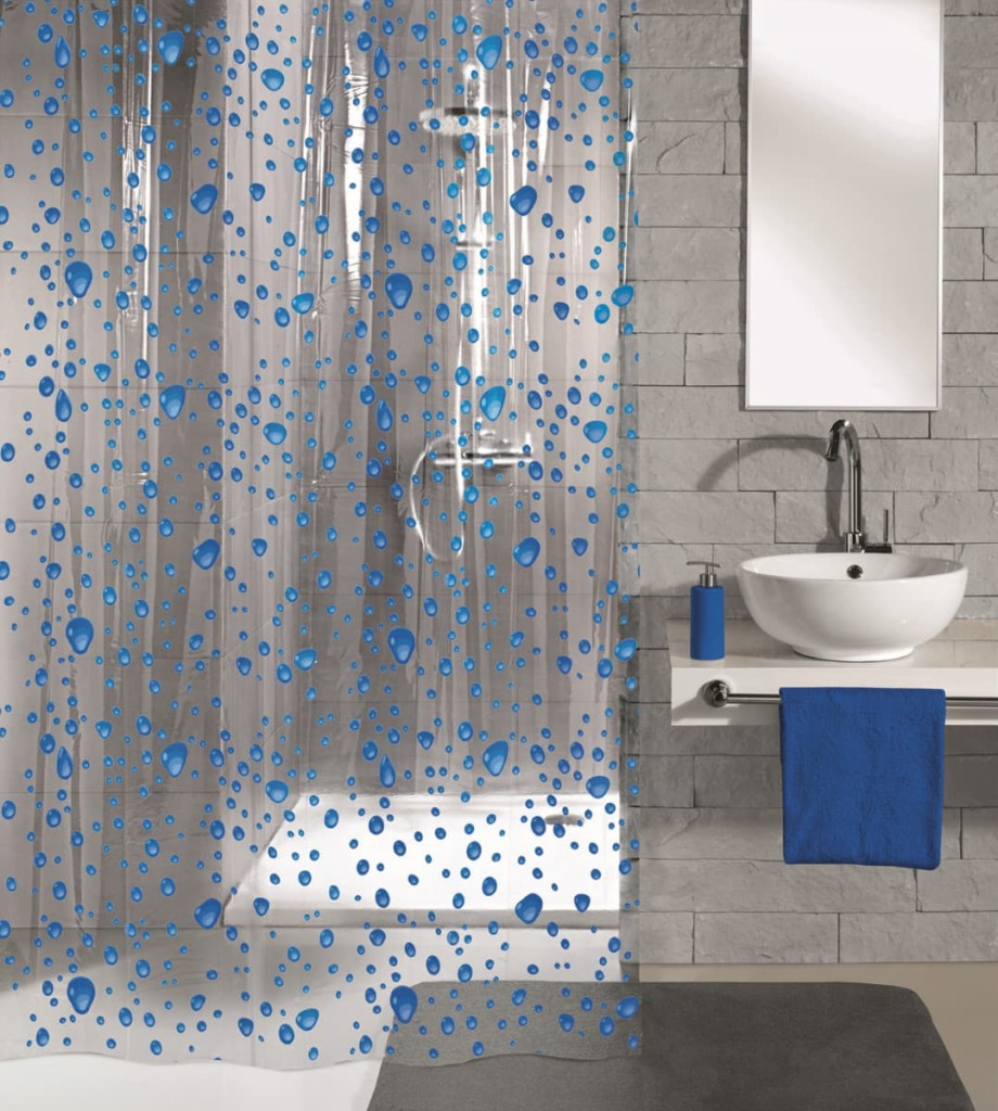 180x200 cm (šxv)barva: modrá/průhledný podkladmateriál 100% PEVY (ekoplast)voděodolnýpevný horní pás s otvory pro kroužkylze ručně prát sušit volně vyvěšenénežehlitzákaz sušení v sušičcenečistit...
