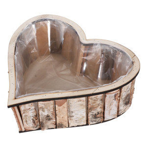 Dotaz na produktSkvělou volbou pro ty, kteří preferují přírodní materiály a rádi by skloubili jejich přirozenou krásu s praktickou funkcí, bude tento originální květinový obal ze dřeva ve tvaru srdce. Je dostatečně prostorný a šikovně tvarovaný, což umožňuje výsadbu širokého spektra okrasných rostlin a umístění na nejlepší zvolené místo dle vašich představ. Dřevěné obaly jsou poměrně lehčí oproti jiným, což má výhody ve snadnější manipulaci s nimi. Součástí produktu je i ochranná plastová fólie, jenž vyplňuje vnitřní část a chrání ji před vnějšími vlivy. Vytvořte si místo, které bude oplývat přírodní krásou a bude ladit s okolním prostředím díky této nápadité dekoraci s praktickým využitím.