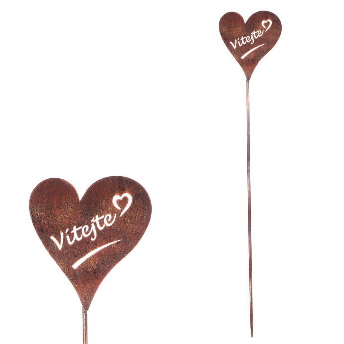 Dotaz na produktKovový zápich v podobě srdíčka v měděné až narezavělé barvě s nápisem "Vítejte" je skvělým prostředkem, jak prokázat okolí svou otevřenost a zároveň dodat unikátní dekoraci vaší zahradě. Můžete jej snadno umístit na záhony, nechat vyniknout na volno v trávníku, nebo ozdobit okolí květin, či keřů. Zabere málo místa, a přitom bude výrazným bodem, který jen stěží někdo přehlédne. Kovová konstrukce zajišťuje trvanlivost a odolnost vůči povětrnostním vlivům, což znamená, že tuto dekoraci můžete nechat venku prakticky po celý rok. Tento zápich přidává do vaší zahrady nejen zajímavý estetický prvek, ale také osobitý charakter, a stane se výrazným bodem vaší celkové kompozice.