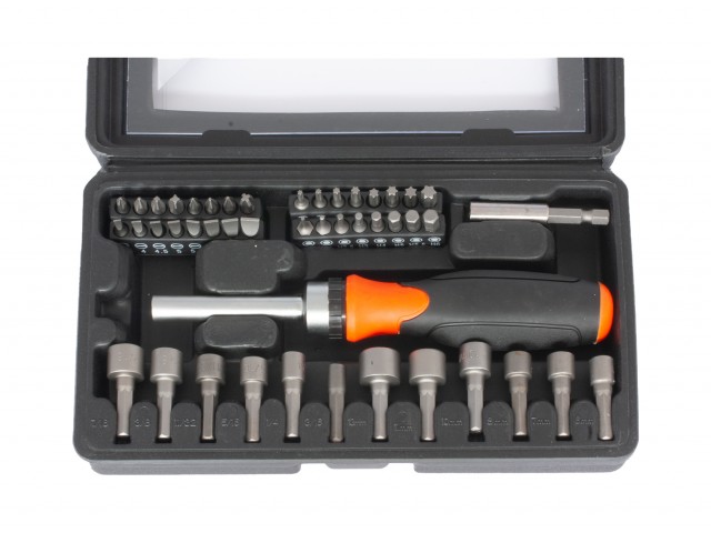 Dotaz na produkt31ks 25mm bitů ,6150CRV: -SL: 3, 4, 5, 6, 7; -PH: 1, 22, 3; -PZ: 1, 22 , 3; -Hex: 2, 3, 4, 5, 6, 7; -Torx: 8, 9, 10, 15, 20, 27, 30, 40; -Square: 0, 1, 2, 3 1ks 25mm adaptér 12ks nástrčných klíčů: 4-4.5-5-5.5-6-7-8-9-10-11-12-13 1ks držák bitů 1ks ráčnové držadlo,72 zubů