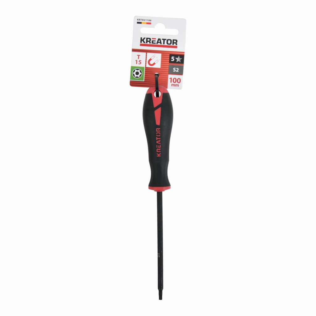 Dotaz na produktTento TORX šroubovák KRTH21106 z naší řady Kreator má 100 mm dlouhou stopku a je vyroben z vysoce kvalitní oceli S2. Magnetický hrot T15 urychluje proces šroubování. Měkká protiskluzová rukojeť poskytuje pevný úchop a rukojeť má integrované závěsné oko pro snadné skladování.
