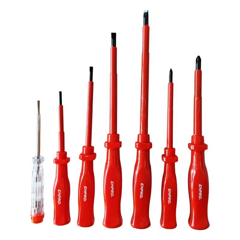 sada elektro šroubováků ENPRO - 7 kscertifikace elektro VDE 1000 V, IEC/EN 60900 - 2004kovový dřík vyroben z velmi kvalitní chromvanadiové ocelikalený hrot je magnetickýergonomicky tvarovaná...