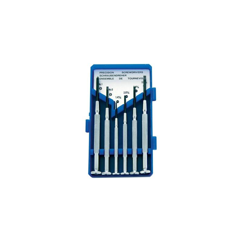 sada nejpoužívanějších tvarů hrotů a velikostí šroubováků pro jemnou mechaniku a optikusada obsahuje: kříž PH0, PH1, plochý 1,4, 1,8, 2,4, 3,0 mmdodáváno v plastové krabičce