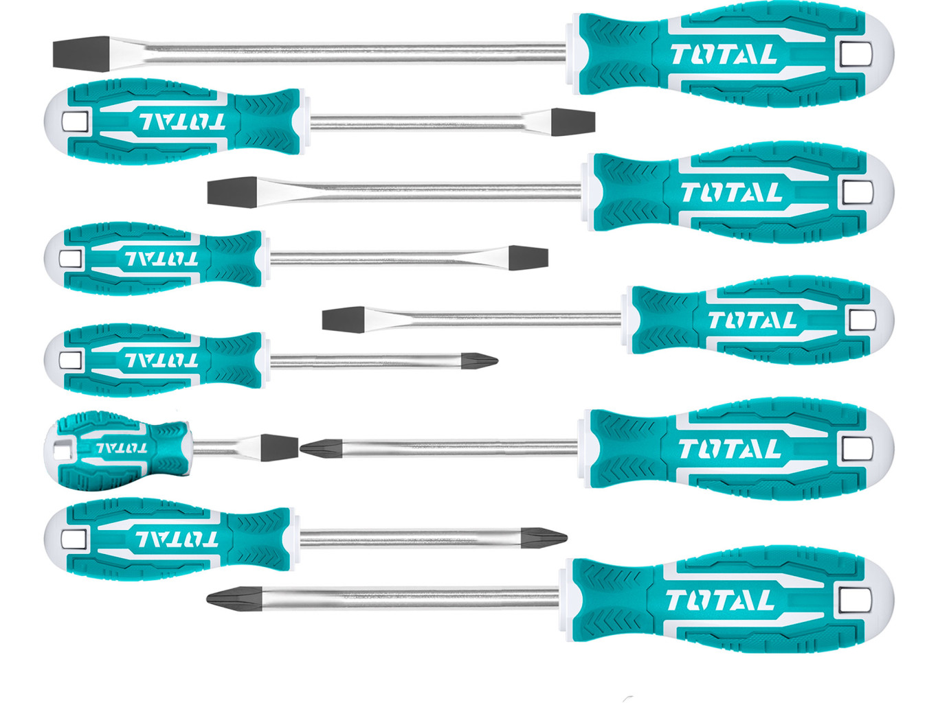 Dotaz na produktnový design rukojetí TOTAL 6ks plochých šroubováku a 4ks šroubováků křížových kvalitní chrom vanadová ocel