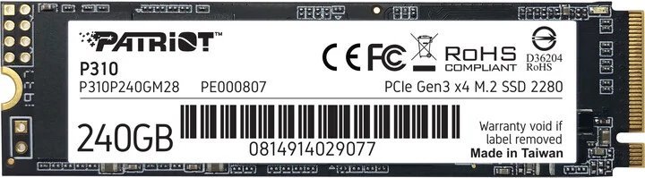Dotaz na produktSSD Disk Patriot P310 je novou generací SSD disků střední třídy pod hlavičkou značky Patriot. Přenosová rychlost a IOPS je nyní rychlejší až o 25 % oproti předchozím modelům. S novými technologiemi, rozhraním PCIe 3.0 x 4, přenosovou rychlostí čtení 1 700 MB/s a zápisu 1 000 MB/s si zajistíte vysoký výkon, lepší produktivitu práce a zvětšení úložiště.