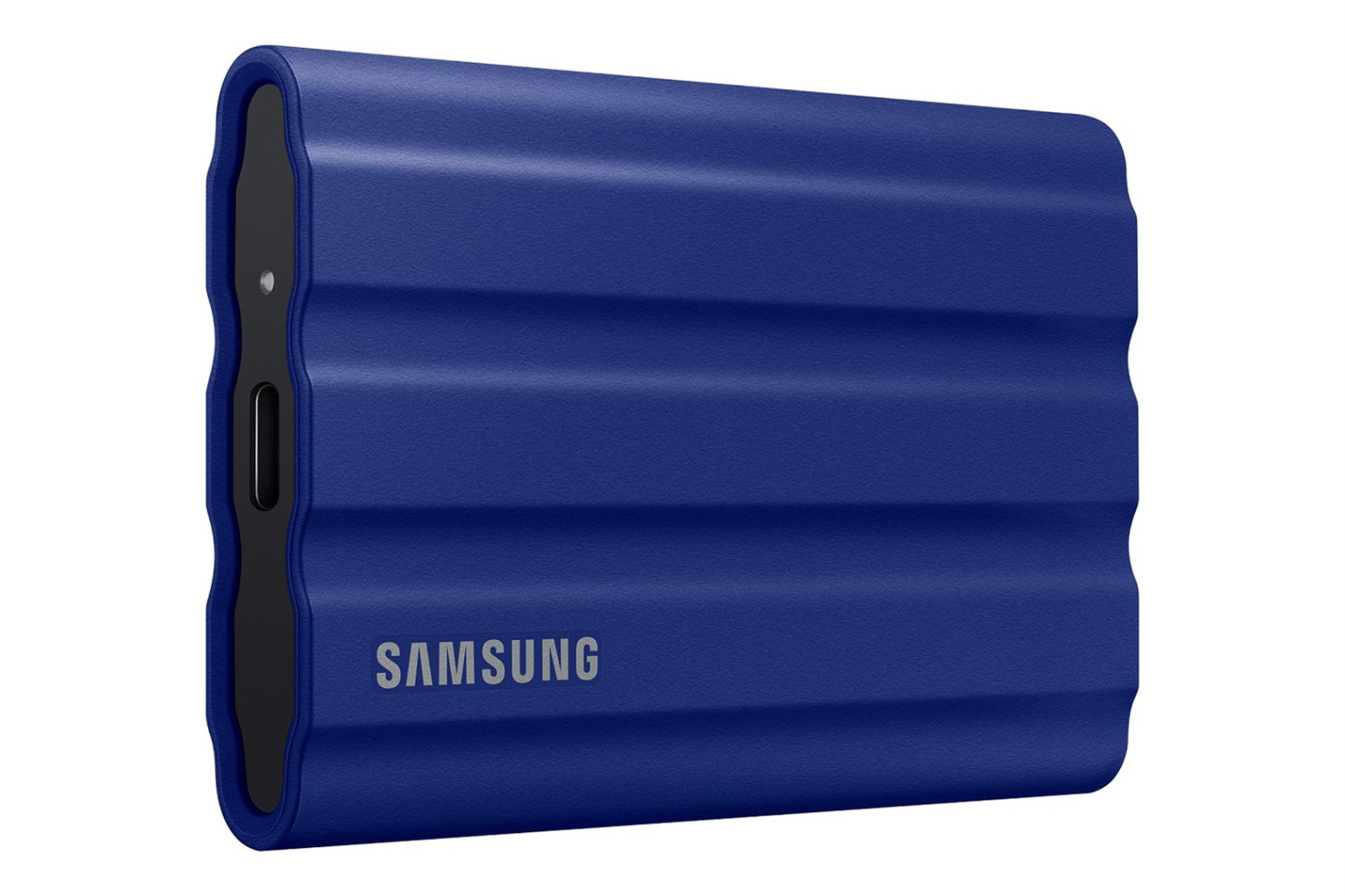 SSD disk, kapacita 2 TB, rychlost čtení a zápisu až 1 050 MB/s, rozhraní USB 3.2 Gen 2, zabezpečení dat heslem, software Samsung Portable SSD, protokol NVMe, všestranná kompatibilita, odolnost vůči pádům, vodě a prachu.