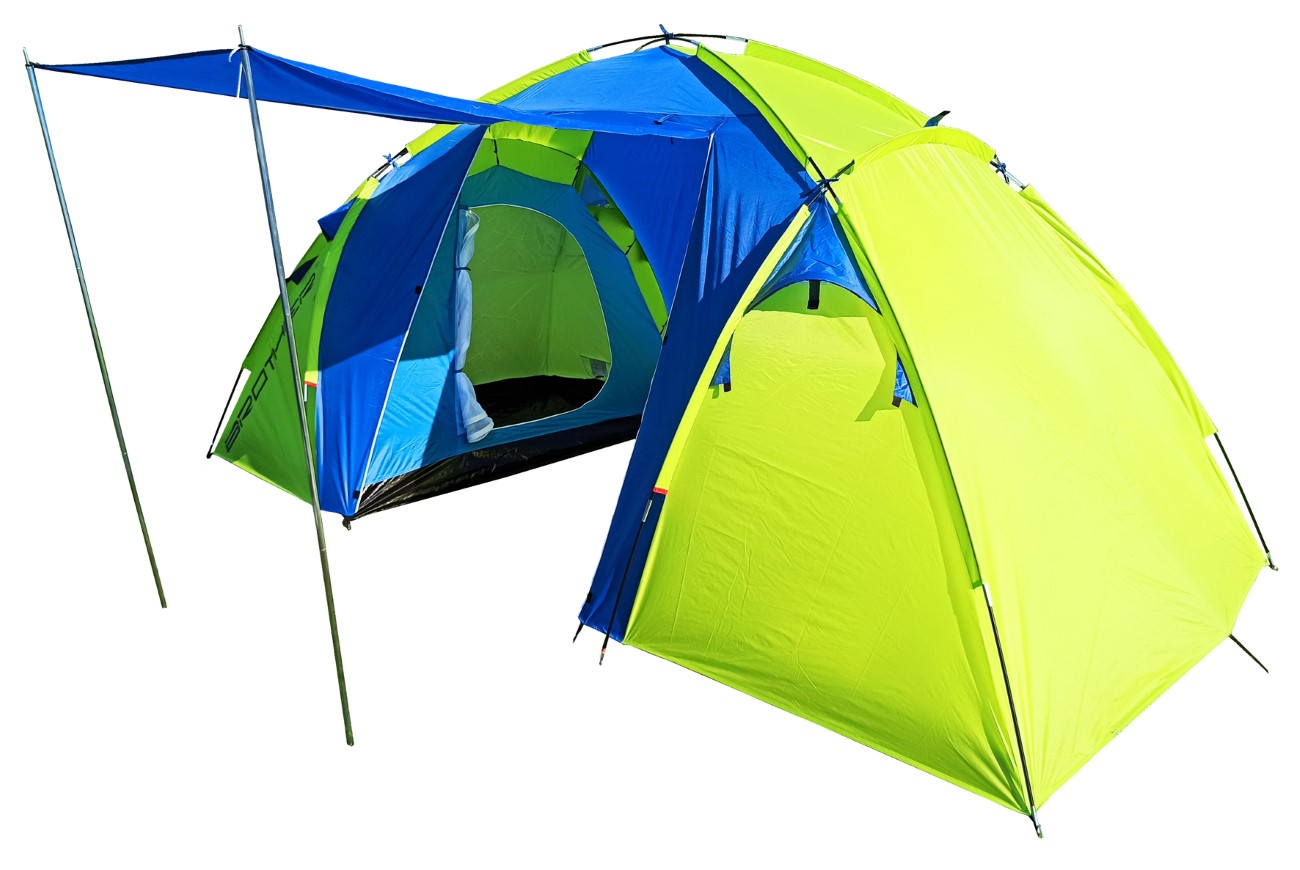 Dotaz na produkt Na splátky ještě dnesRodinný stan vhodný pro příležitostné kempování. Předsíňka spolu se slunečním přístřeškem vytvářejí dostatek vnitřního prostoru i v případě nepříznivého počasí. I při své velikosti je velmi skladný a s pomocí laminátových prutů postavení nezabere víc než 15 minut. Vhodný pro 4 osoby.