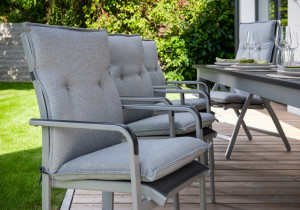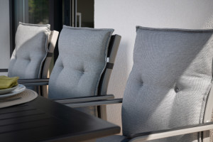 - polstr na židli a křeslo Polstr s nízkou opěrkou na zahradní nábytek řady STAR je v provedení s obšitým lemem, 2x kroužkově prošitý v opěradle. Uchycení je pomocí posuvné spony. Díky sponě si můžete nastavit velikost dle rozměru a druhu židle, spona je pevná a nevytahuje se. Upevnění sedáku je pomocí dvou tkaniček v ohybu polstru. Potah je nesnímatelný.Vyrobeno v České republice. Informace o produktu: rozměry polstru: 100 x 48 x 6 cm (výška x šířka x tloušťka) rozměry sedáku: 47 x 48 cm rozměry opěradla: 53 x 48 cm Materiál: potah: vysoce jakostní dralonová tkanina (jedná se o setkávaná barevná vlákna) výplň: molitan obalený do polyesterového rouna Informace o dralonové tkanině: dralon = polyakrylnitrilová vlákna (mezinárodní zkratka: PAN) jsou umělá textilní vlákna má vynikající odolnost proti vlivům světla, povětrnosti a mikroorganizmů pevnost je nižší než u jiných syntetických vláken a tím ale i nižší sklon ke žmolkování PAN vlákno je pružné a měkké, velmi vhodné k mísení s vlnou a jako alternativa k vlněným výrobkům praní je možné jen ve vlažné vodě, žehlení je většinou zbytečné, nemačká se Celkové rozměry podušek jsou uváděny s tolerancí plus /