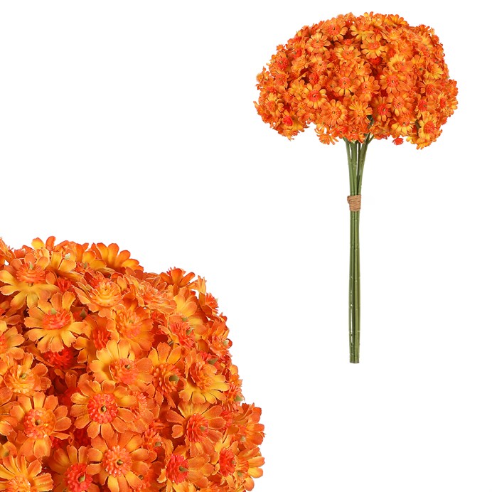 Dotaz na produktSvazek těchto nádherně zbarvených, drobných kvítků starčku, vás ohromí svým půvabem. Jejich elegance a jemnost společně se sytě oranžovým zbarvením, přinese do prostoru výrazný estetický prvek. Jsou sice umělé, ale od živých jsou takřka k nerozeznání. Vydrží vám na věky a stále ve stejně svěží podobě, jako byste je právě teď natrhali z květinové zahrádky.