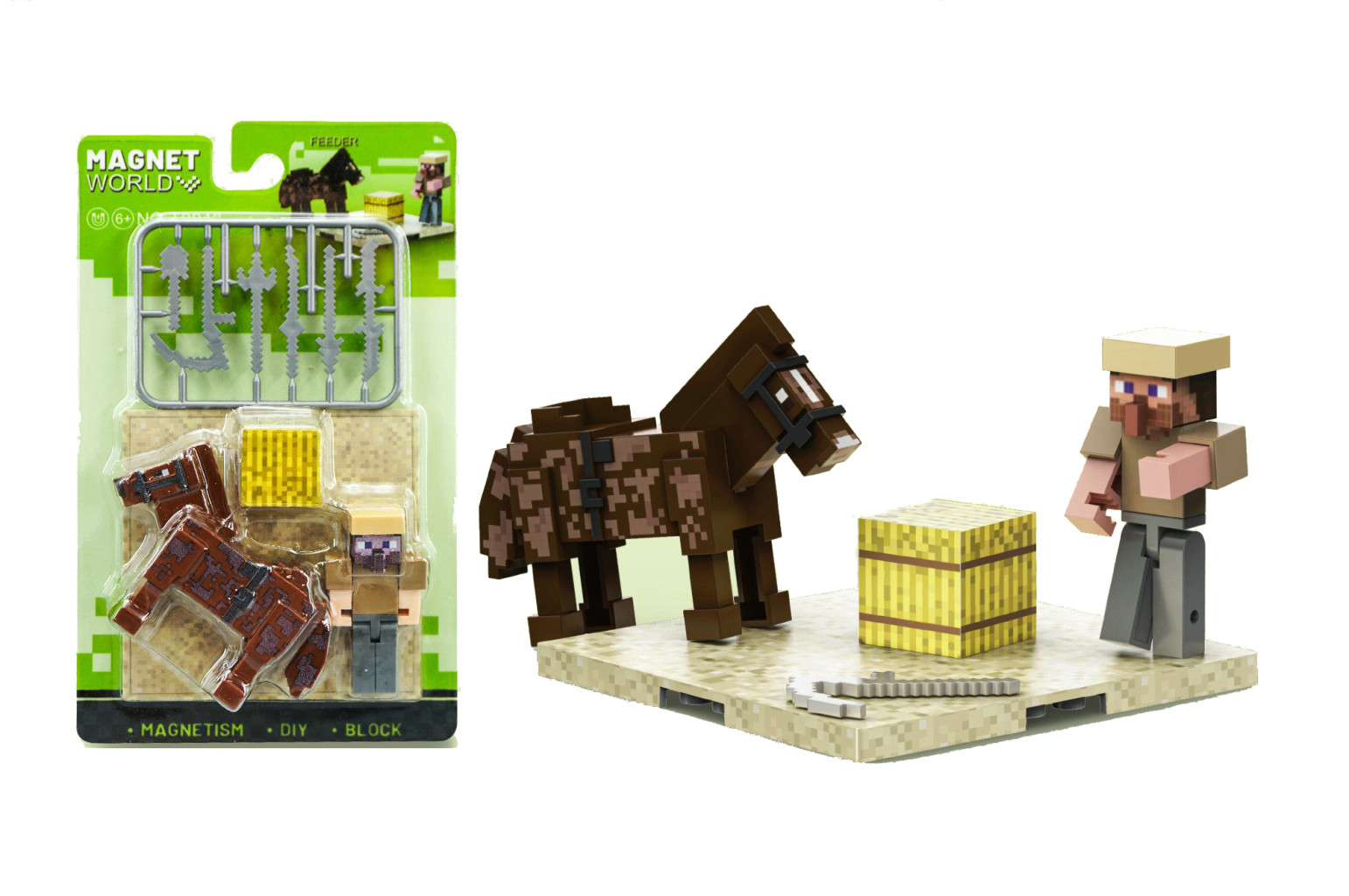 Dotaz na produktStavebnice Magnet World bojovník s koněm. Velikost panáčka 5cm.