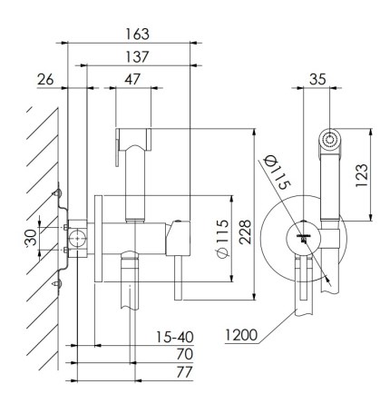 STEINBERG 100 bidetová podomítková baterie, se sprškou, s tělesem, chrom