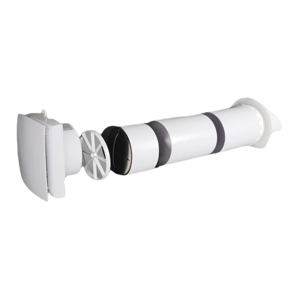 Do nejlépe do jádrovým vrtáním vyvrtaného otvoru se vsune venkovní část potrubí s hlavicí se silikonovým límcem tak, aby celý límec prošel otvorem a pohybem zpět se opřel o venkovní fasádu. Poté se venkovní díl vystředí a zajistí PU montážní pěnou. Po zatuhnutí se vloží část s tepelným výměníkem a filtry a opět upevní PU pěnou. Nakonec se upevní vnitřní jednotka na vnitřní stěnu a připojí se k el. síti.