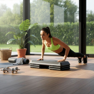 Konstrukce je navržena pro maximální stabilitu a dlouhou životnost. Protiskluzový povrch desky zajišťuje jistý krok při každém pohybu, zatímco protiskluzové nožičky brání posunutí během cvičení. Robustní konstrukce poskytuje spolehlivou oporu a je vhodná pro pravidelný domácí i fitness trénink.
