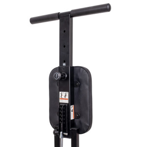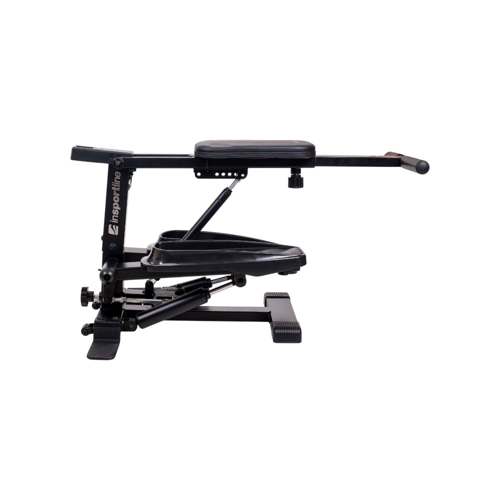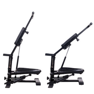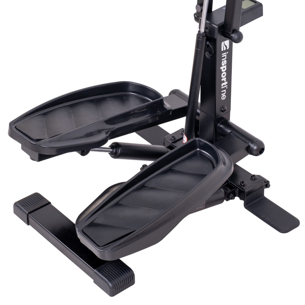Odolná kovová konstrukce zajišťuje potřebnou stabilitu při každém pohybu, zatímco protiskluzové nášlapy poskytují jistý a bezpečný krok. Samotné madlo je uchyceno na pohyblivém pístu, takže po odjištění zarážky se zařízení snadno promění v posilovač paží nebo pomůcku pro trénink stehen a hýždí – například dřepy s oporou. Přehled o tréninku pak udržíte díky integrovanému displeji, který zobrazuje čas cvičení, počet kroků, vzdálenost, spálené kalorie i celkový počet kroků.