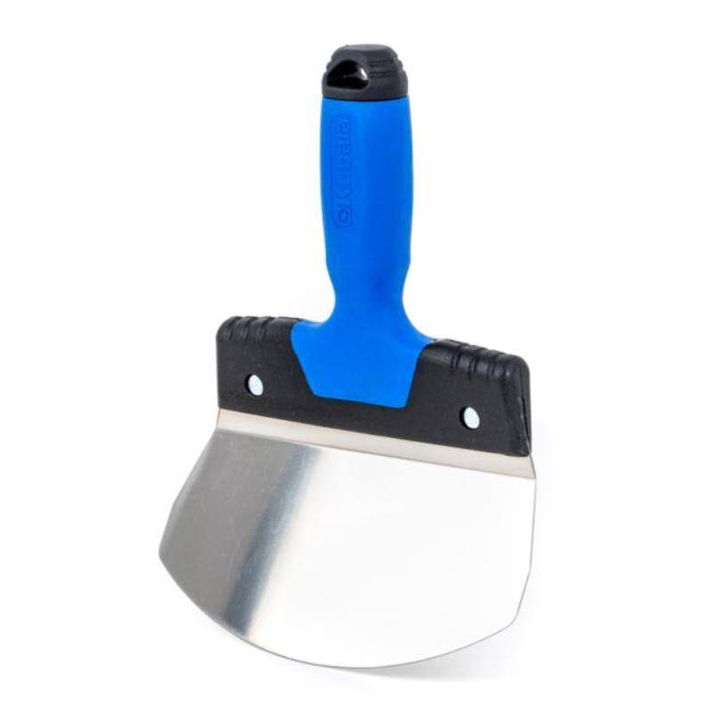stěrka zaoblená 160 mmergonomická, profilovaná rukojeť typu soft.nerezový, velmi pružný, elastický, kyselině odolný plech, tl. 0,5 mm.tvar stěrky umožňuje rychle a precizně vybrat hmotu z kbelíku.