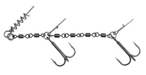 Dotaz na produktDvojitý stinger se zavrtávačkou a kolíky. Použití několika otočných prvků poskytuje velmi silné spojení, které prakticky eliminuje potenciální výskyt neočekávané páky během zdolávání a zároveň stabilizuje nástrahu. Velikost XL určená pro největší nástrahy.