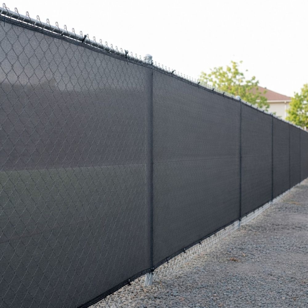 Stínící tkanina na plot 150 cm x 10 m 90% zastínění SPRINGOS SN0070 světle grafitová poskytuje vysokou úroveň ochrany před nežádoucími pohledy z okolí. Zajišťuje výrazné zastínění a zároveň pomáhá tlumit vítr, omezovat prašnost a snižovat hluk.