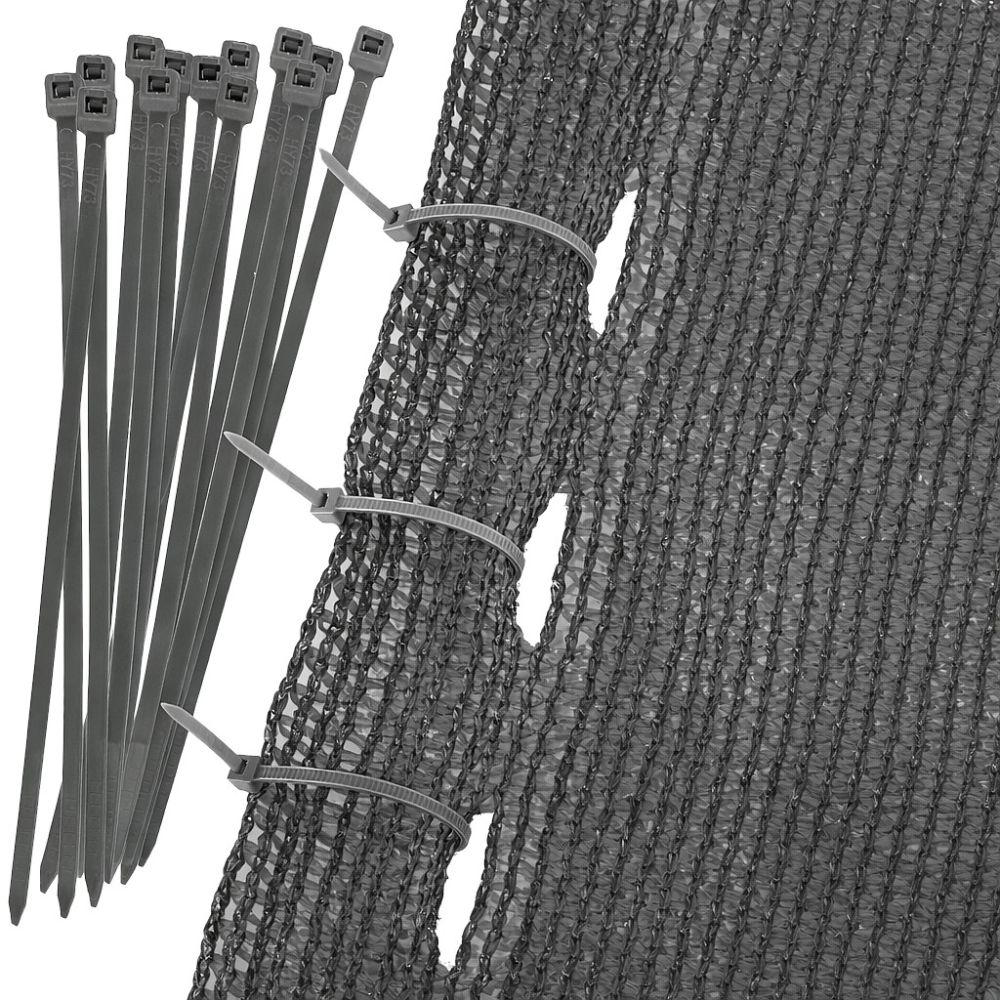 Zpevněné okraje s předpřipravenými oky zajišťují jednoduchou a rychlou instalaci na libovolné konstrukce, ať už na ploty, balkóny či terasy. V balení najdete 100 stahovacích pásků, které umožňují pevné a bezpečné upevnění bez potřeby dokupovat další příslušenství.