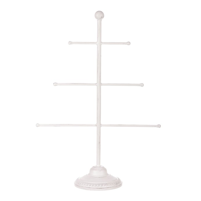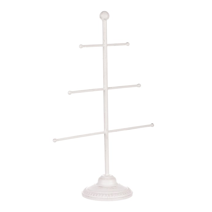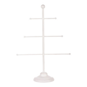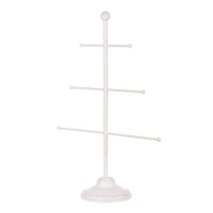 Dotaz na produktTento kovový stojan s příčkami v bílé barvě je praktickým a všestranným řešením pro zavěšení různých praktických předmětů, případně i dekorací. Konstrukce je složena z jedné nohy na podstavci, a zbytek tvoří vodorovné tyče ve třech různých výškových úrovních zakončené kulatým koncem. Horní závěsná tyč je nejkratší a každá další spodnější je delší. Doporučuje se tak rovnoměrné zatížení obou stran stojanu, aby byla zajištěna jeho stabilita. Tento stojan vám pomůže udržovat věci dobře uspořádané a přehledné.