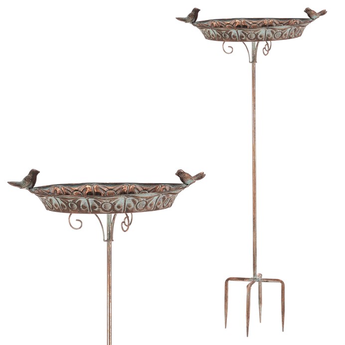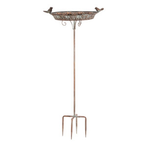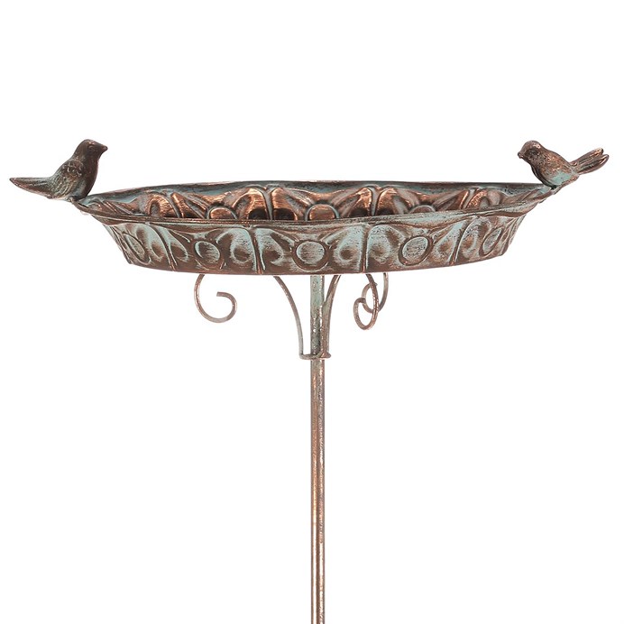 Dotaz na produkt Na splátky ještě dnesKovová mísa na vysokém zápichu (téměř 90 cm) je krásnou a praktickou ozdobou do zahrady. Zdobí ji dva pěvci na okrajích a díky měděné barvě působí elegantně. Může sloužit jako krmítko pro ptáčky nebo jako základ pro aranžování. Stylový doplněk, který přinese život do vaší zahrady.