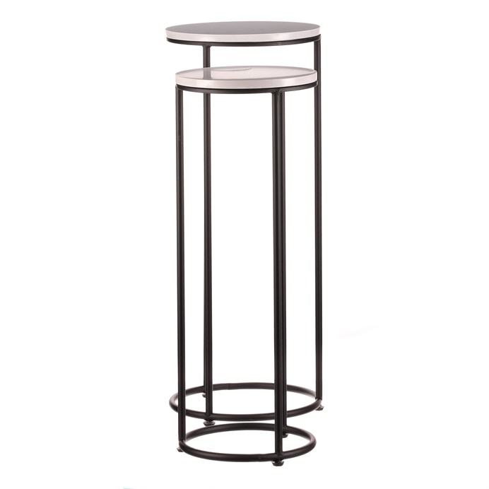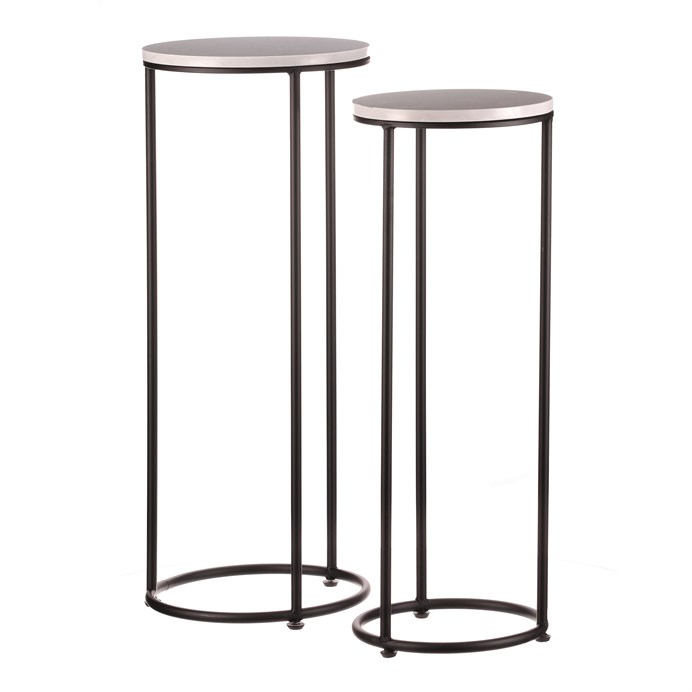 Dotaz na produkt Na splátky ještě dnesStylový stojan na květiny s černými kovovými rámy a elegantní břidlicovou deskou nabízí skvělý způsob, jak vystavit vaše oblíbené rostliny nebo jiné dekorace. Sada dvou rozdílně vysokých stojanů vytvoří zajímavou vizuální dynamiku a na vyvýšeném místě zdůrazní krásu vystavených rostlin či předmětů. Váš prostor bude vzdušnější a snadněji udržovatelný.