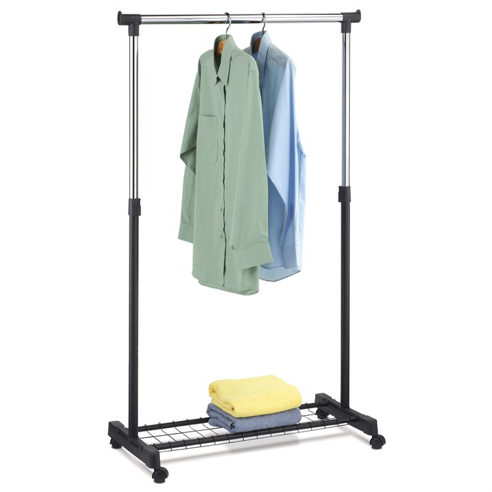 Dotaz na produktJednoramenný stojan na šaty v černém provedení kombinuje pevný kov s odolným plastem a chromovanými prvky pro moderní vzhled. Výška stojanu je nastavitelná, což umožňuje přizpůsobení různým délkám oděvů a zajišťuje komfortní používání. Stabilní základna je vybavena kolečky pro snadnou manipulaci a praktickým odkladačem ve spodní části, který nabízí prostor pro uložení bot nebo dalších doplňků. Celková konstrukce je navržena pro dlouhou životnost a spolehlivost v každodenním provozu.