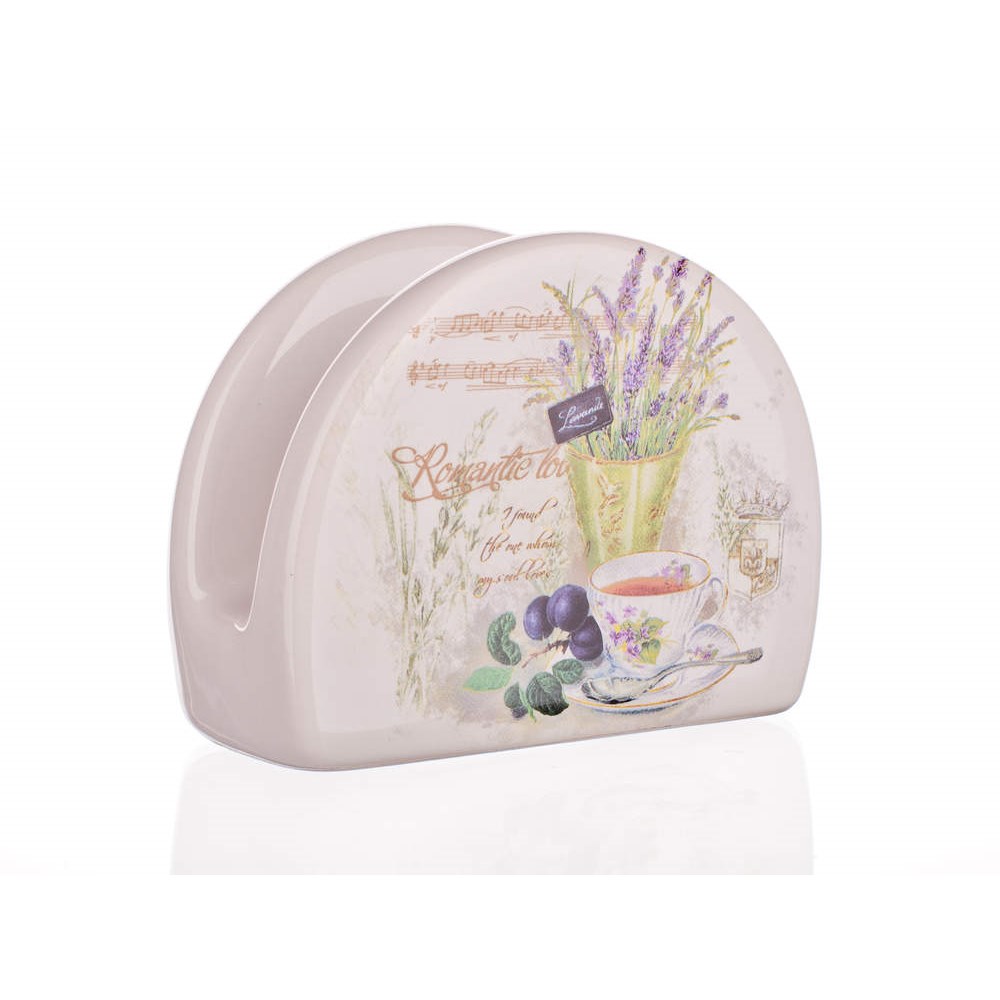 Dotaz na produktStojánek na ubrousky LAVENDER, rozměry: délka 10 cm, výška 8 cm, šířka 4 cm, materiál - keramika, bílá glazura s dekorem levandule.